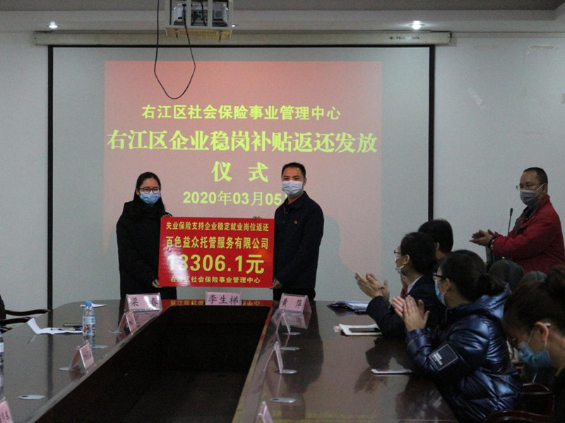 減輕企業(yè)負(fù)擔(dān) 益眾公司獲首批右江區(qū)企業(yè)穩(wěn)崗補(bǔ)貼返還