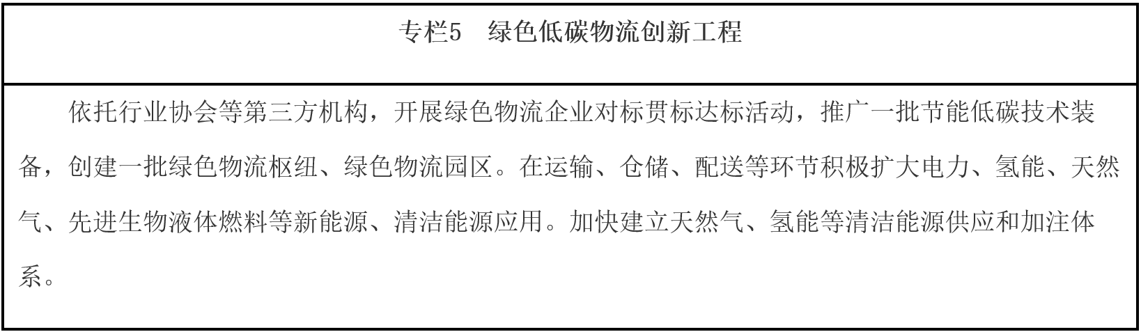 深入推進(jìn)物流領(lǐng)域節(jié)能減排。加強(qiáng)貨運(yùn)車輛適用的充電樁、加氫站及內(nèi)河船舶適用的岸電設(shè)施、液化天然氣(LNG)加注站等配套布局建設(shè),加快新能源、符合國六排放標(biāo)準(zhǔn)等貨運(yùn)車輛在現(xiàn)代物流特別是城市配送領(lǐng)域應(yīng)用,促進(jìn)新能源叉車在倉儲領(lǐng)域應(yīng)用。繼續(xù)加大柴油貨車污染治理力度,持續(xù)推進(jìn)運(yùn)輸結(jié)構(gòu)調(diào)整,提高鐵路、水路運(yùn)輸比重。推動物流企業(yè)強(qiáng)化綠色節(jié)能和低碳管理,推廣合同能源管理模式,積極開展節(jié)能診斷。加強(qiáng)綠色物流新技術(shù)和設(shè)備研發(fā)應(yīng)用,推廣使用循環(huán)包裝,減少過度包裝和二次包裝,促進(jìn)包裝減量化、再利用。加快標(biāo)準(zhǔn)化物流周轉(zhuǎn)箱推廣應(yīng)用,推動托盤循環(huán)共用系統(tǒng)建設(shè)。