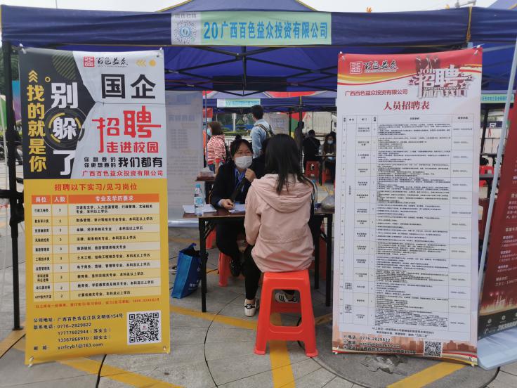 ????????近日,益眾公司組織參加2021屆廣西財經類高校畢業(yè)生就業(yè)雙向選擇洽談會和2020年百色市離校未就業(yè)高校畢業(yè)生專場招聘會 。