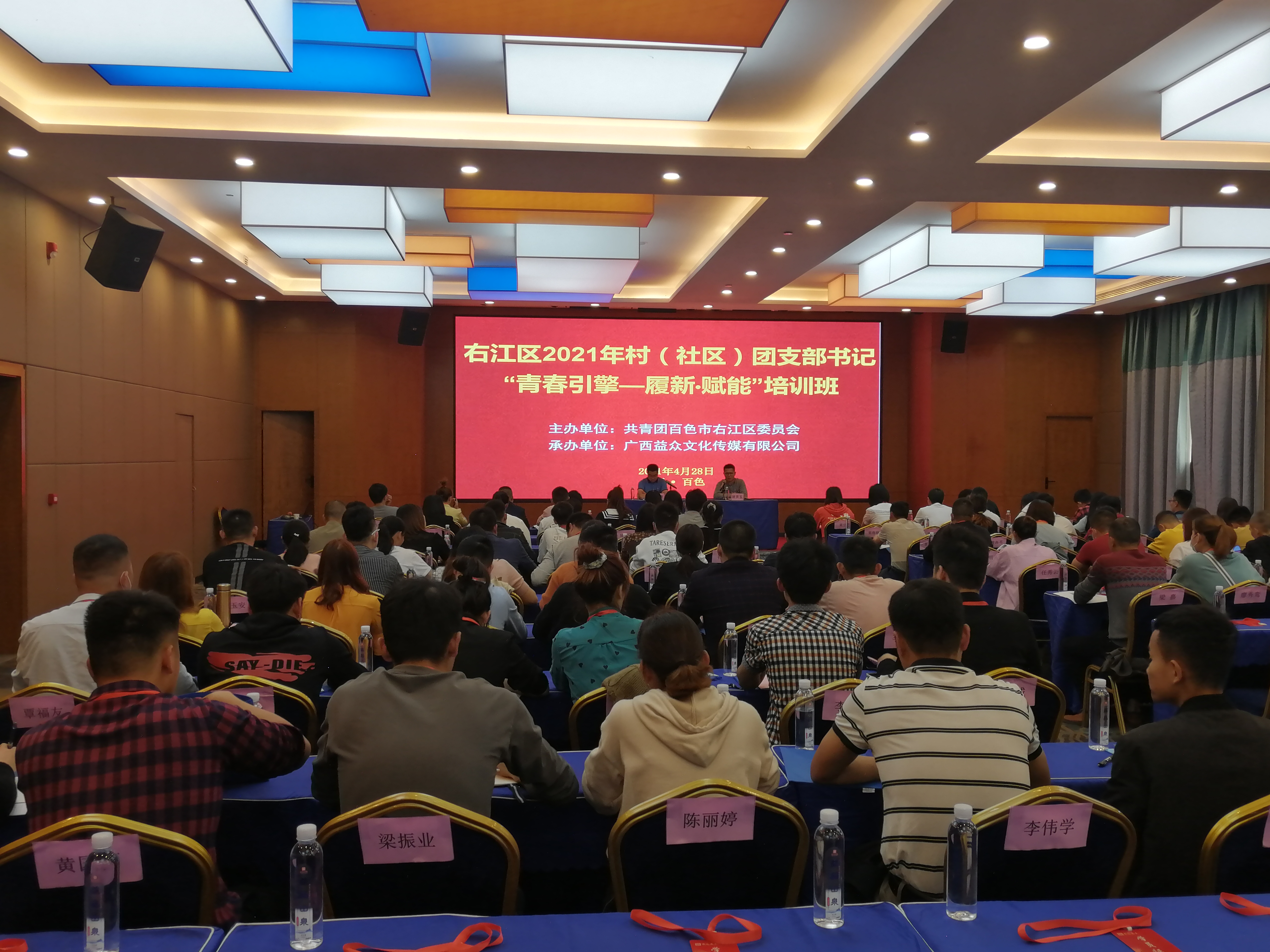 ????????為進(jìn)一步提升各村(社區(qū))團(tuán)支部書記履職能力,增強(qiáng)團(tuán)員隊伍建設(shè),4月28日至30日,共青團(tuán)百色市右江區(qū)委員會主辦,廣西益眾文化傳媒有限公司承辦了右江區(qū)2021年村(社區(qū))團(tuán)支部書記“青春引擎—履新·賦能”培訓(xùn)班,來自右江區(qū)各村(社區(qū))團(tuán)支部書記共一百多人參加本期培訓(xùn)。