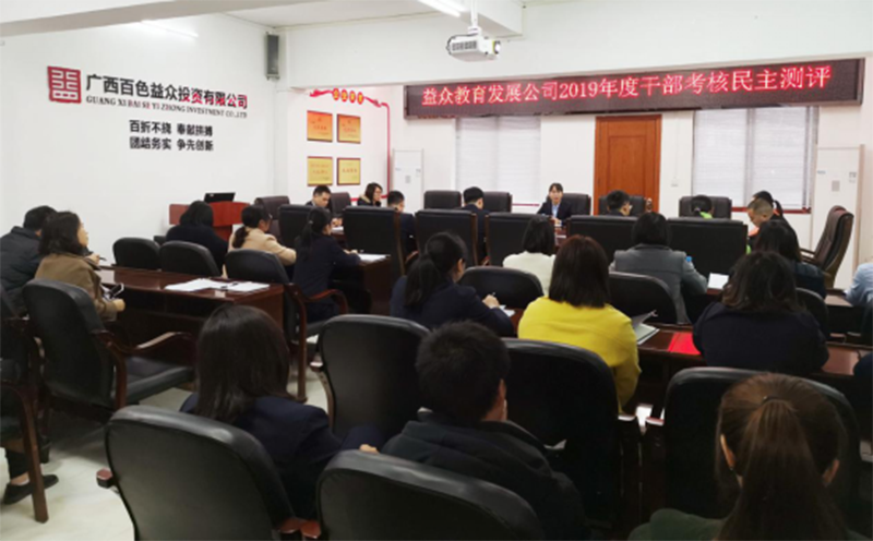 2019年12月31日,益眾教育公司召開2019年度干部民主測評考核會議,對益眾托管公司、益眾后勤公司主管以上干部進(jìn)行年度考核民主測評,公司全體管理人員參加會議。會議強(qiáng)調(diào)了開展干部民主測評考核工作的重要性,要求客觀公正的對測評對象的德、能、勤、績、廉等方面進(jìn)行據(jù)實(shí)評價,嚴(yán)格遵守考核紀(jì)律,營造風(fēng)清氣正的考核工作環(huán)境。
