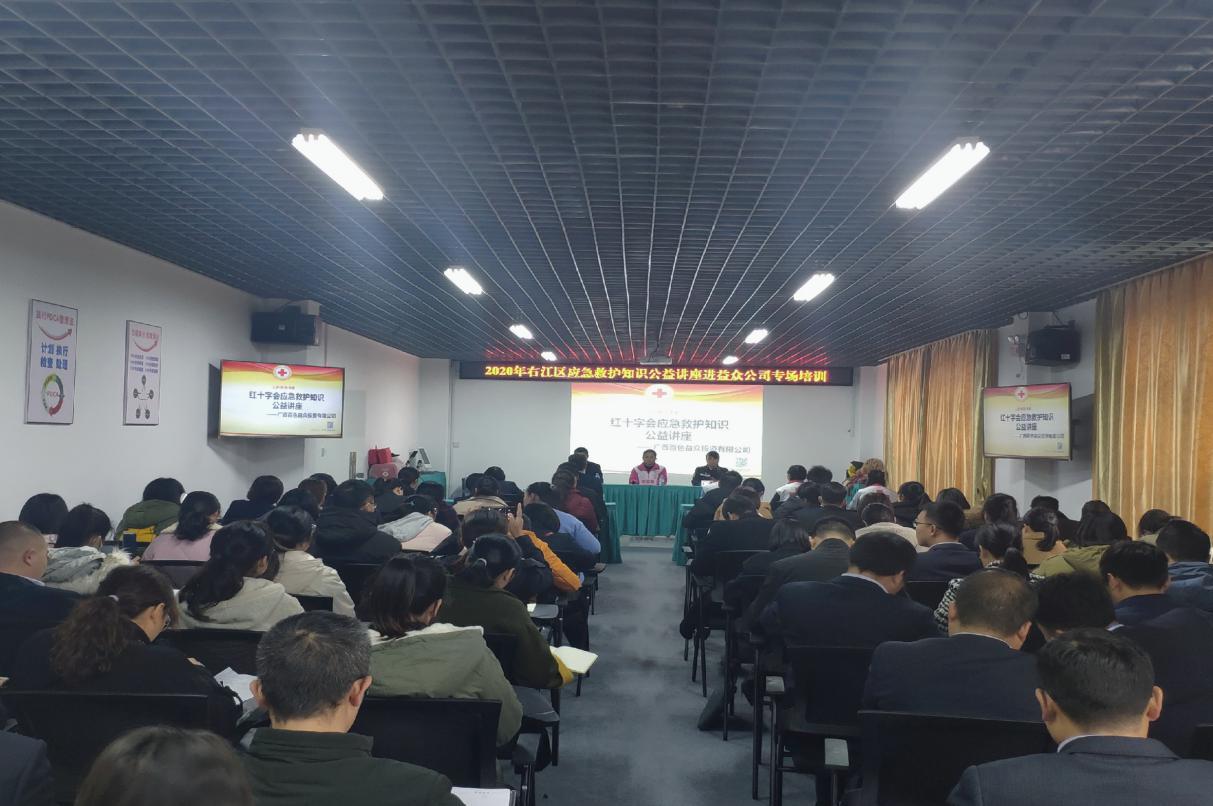 ????????為普及應急救護知識,提高員工安全防范意識、自救互救能力和應急救護技能,12月2日、6日,益眾公司邀請百色市右江區(qū)紅十字會到公司開展急救知識技能培訓,公司百余名管理人員、有關直屬班組400余人參加培訓。