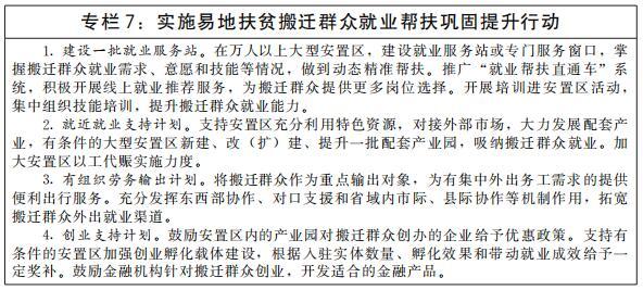 穩(wěn)定脫貧人口就業(yè)。健全脫貧人口、農(nóng)村低收入人口就業(yè)幫扶長效機制,保持脫貧人口就業(yè)領域的扶持政策、資金支持、幫扶力量總體穩(wěn)定。健全有組織勞務輸出工作機制,將脫貧人口作為優(yōu)先保障對象,穩(wěn)定外出務工規(guī)模。支持脫貧地區(qū)大力發(fā)展當?shù)貎?yōu)勢特色產(chǎn)業(yè),繼續(xù)發(fā)揮就業(yè)幫扶車間、社區(qū)工廠、衛(wèi)星工廠等就業(yè)載體作用,為脫貧人口創(chuàng)造就地就近就業(yè)機會。聚焦國家鄉(xiāng)村振興重點幫扶縣、易地扶貧搬遷安置區(qū),積極引進適合當?shù)厝罕娋蜆I(yè)需求的勞動密集型、生態(tài)友好型企業(yè)(項目),增加本地就業(yè)崗位,組織專項就業(yè)服務活動實施集中幫扶。