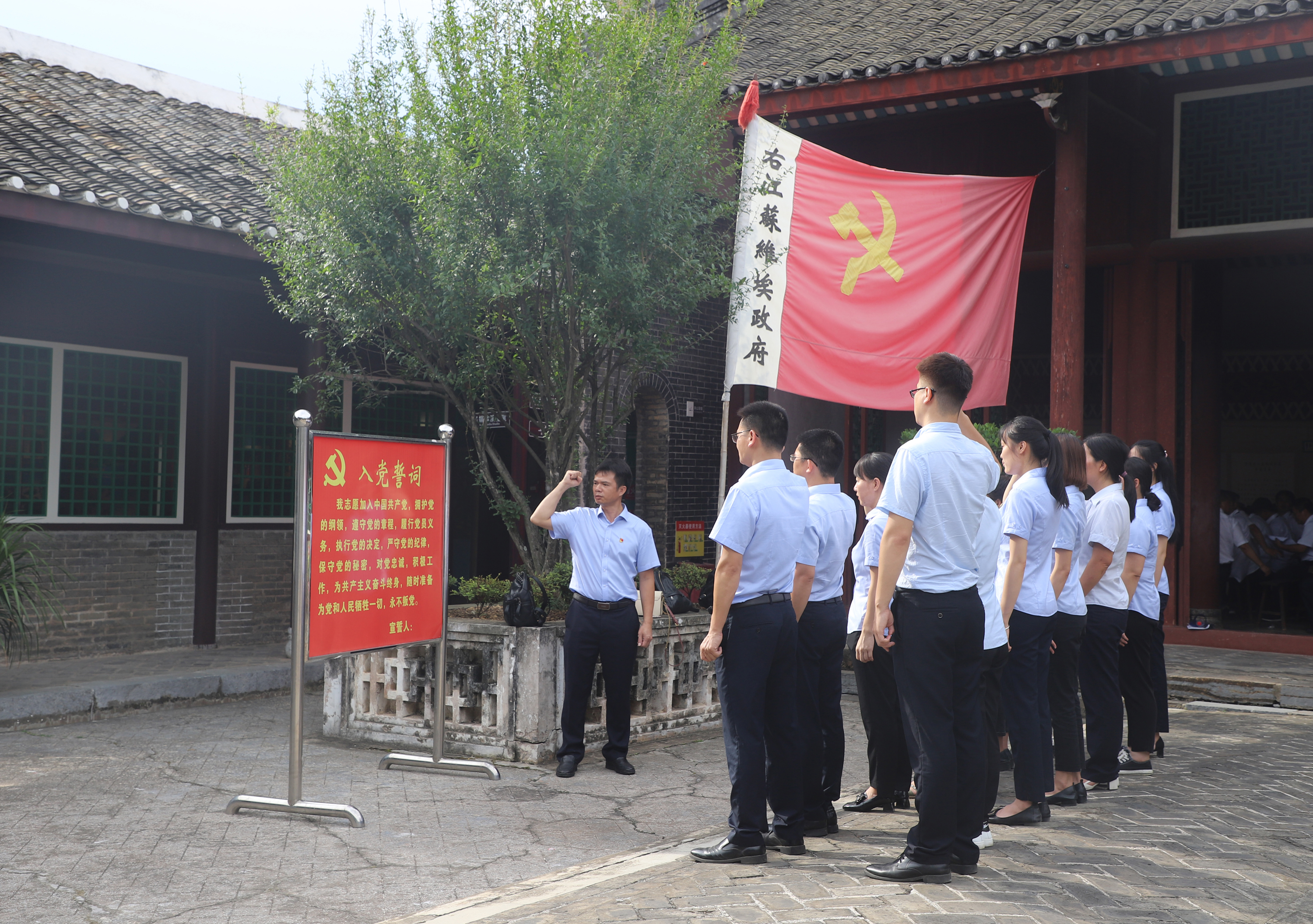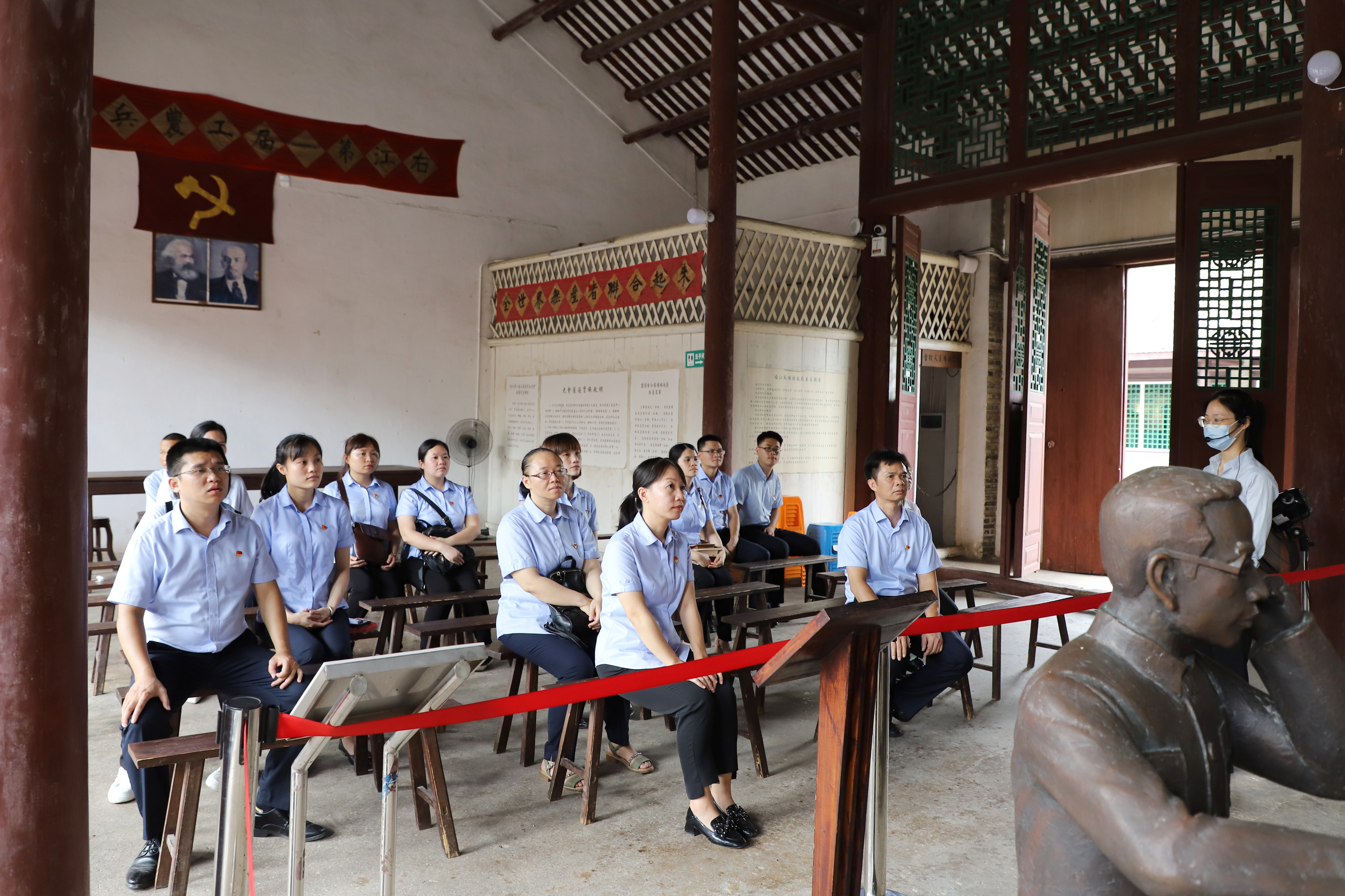????????當(dāng)日下午,益眾公司黨支部全體黨員先后到田東縣那恒革命史館、二芽碼頭、紅軍會師廣場、右江蘇維埃政府舊址、百谷紅軍陳列室等地走訪學(xué)習(xí),以鄧小平在田東的革命足跡為主線,進行挺進右江、勝利會師、經(jīng)正書院等現(xiàn)場教育活動,接受革命精神的洗禮。