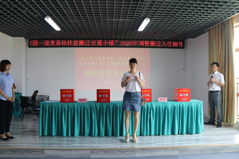 6月14日,右江區(qū)“老鄉(xiāng)家園—迎龍易地扶貧搬遷安置小鎮(zhèn)”2020年調整搬遷入住工作拉開了序幕。當日上午,符合本次新調入搬遷對象的搬遷戶在益眾公司老鄉(xiāng)家園(益眾.尚城商業(yè)樓B1棟)辦公區(qū)舉行現(xiàn)場抽號選房、簽約手續(xù)。