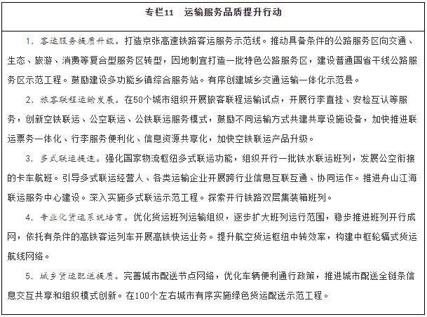 運(yùn)輸服務(wù)更加高效。運(yùn)輸服務(wù)質(zhì)量穩(wěn)步提升,客運(yùn)“一站式”、貨運(yùn)“一單制”服務(wù)更加普及,定制化、個(gè)性化、專業(yè)化運(yùn)輸服務(wù)產(chǎn)品更加豐富,城市交通擁堵和“停車難”問(wèn)題持續(xù)緩解,農(nóng)村和邊境地區(qū)運(yùn)輸服務(wù)更有保障,具備條件的建制村實(shí)現(xiàn)快遞服務(wù)全覆蓋。面向全球的國(guó)際運(yùn)輸服務(wù)網(wǎng)絡(luò)更加完善,中歐班列發(fā)展質(zhì)量穩(wěn)步提高。