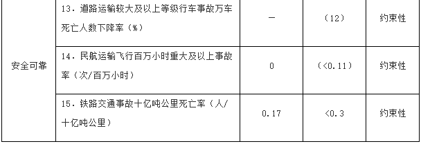 注:①〔〕內(nèi)為5年累計(jì)數(shù)。②指納入國(guó)家批準(zhǔn)的城市軌道交通建設(shè)規(guī)劃中的大中運(yùn)量城市軌道交通項(xiàng)目。③指國(guó)際樞紐機(jī)場(chǎng)和區(qū)域樞紐機(jī)場(chǎng)中連通軌道交通的機(jī)場(chǎng)數(shù)量占比。④指重點(diǎn)營(yíng)運(yùn)車輛、郵政快遞自有干線運(yùn)輸車輛、應(yīng)安裝具備衛(wèi)星定位功能船載設(shè)備的客船及危險(xiǎn)品船等。⑤指新能源公交車輛占所有地面公交車輛的比重。⑥指按單位運(yùn)輸周轉(zhuǎn)量計(jì)算的二氧化碳排放。