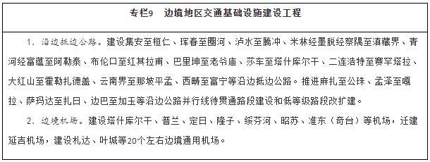 服務(wù)沿邊城鎮(zhèn)體系建設(shè),以公路、機(jī)場(chǎng)為重點(diǎn),大力改善邊境地區(qū)交通出行條件,提升邊境城鎮(zhèn)人口集聚能力。統(tǒng)籌推進(jìn)邊境地區(qū)國(guó)省干線公路、農(nóng)村公路等建設(shè),全面完善國(guó)道干線主骨架,推進(jìn)沿邊公路并行線建設(shè)和低等級(jí)公路提質(zhì)改造,加快抵邊公路建設(shè),盡快形成層次清晰、結(jié)構(gòu)合理的沿邊公路網(wǎng)。穩(wěn)步推進(jìn)邊境地區(qū)機(jī)場(chǎng)建設(shè),構(gòu)建多層級(jí)航空網(wǎng),擴(kuò)大航空運(yùn)輸服務(wù)覆蓋面。補(bǔ)強(qiáng)同江、二連浩特、阿拉山口、霍爾果斯、瑞麗、磨憨等口岸后方鐵路通道能力。加強(qiáng)抵邊自然村郵政設(shè)施建設(shè),實(shí)現(xiàn)郵政服務(wù)普遍覆蓋。